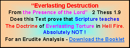A Download a No 13 Printable Book by Thomas B Thayer available Doctrine of Endless Punishment This Never ending, conscious Eternal torment is a lie. It is my belief that Christians who say they believe in this doctrine, But they do not realise its implications. I believe that Nobody, in their right mind can believe this hideous teaching and I challenge anyone who disagrees, to read the above book that explains the words ‘κολασιν αωνιον’ do not mean ‘Eternal Punishment.’ Matt 25.46 The correct translation is ‘the age of Chastisement’ The book shows with the proper translation of the Greek words, which Christ actually said, proves that Eternal Hell Fire is an Evil Teaching. Did you know that there is special Greek word for Real Eternity ‘aidios’ which our Lord never ever use once ! |